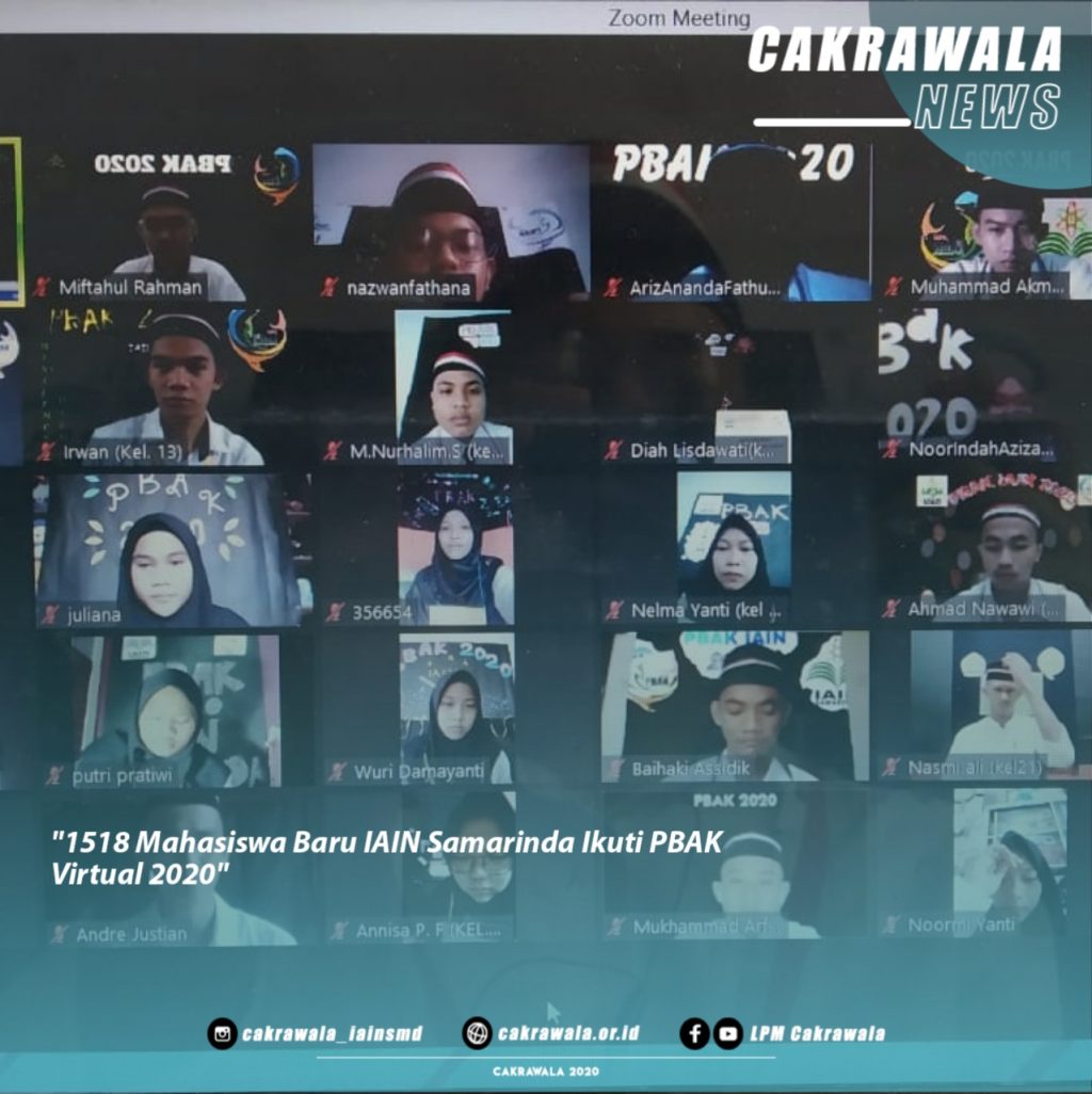 Samarinda, LPM Cakrawala- 1518 Mahasiswa baru Institut Agama Islam Negeri (IAIN) Samarinda, mengikuti Pembukaan Pengenalan Budaya Akademik dan Kemahasiswaan (PBAK). Senin, (21/09) di Auditorium Aji Sultan Sulaiman melalui zoom meeting.