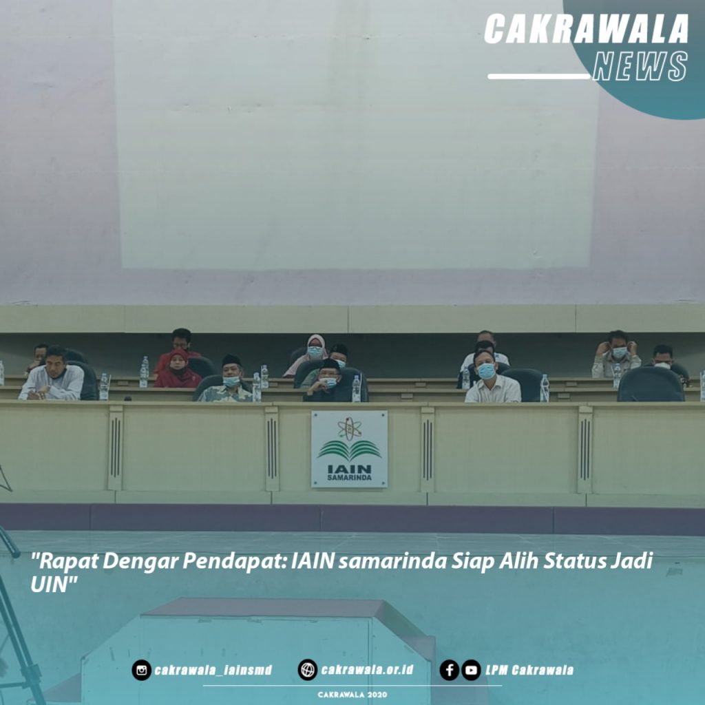 Samarinda, LPM Cakrawala – Senat Mahasiswa (Sema) Institut Agama Islam Negeri (IAIN) Samarinda, menggelar rapat dengar pendapat dengan tema “Bincang Pincang Soal UIN”. Acara yang dimulai pada pukul 08.30 hingga 12.00 WITA tersebut dilaksanakan di Auditorium 22 Dzulhijjah dan disiarkan langsung melalui channel YouTube IAIN Samarinda, Rabu (11/11).