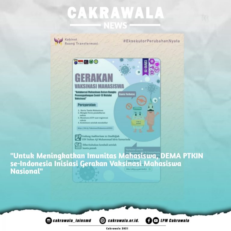 Samarinda, LPM Cakrawala- Dewan Eksekutif Mahasiswa (DEMA) Institut Agama Islam Negeri (IAIN) Samarinda, menggelar Gerakan Vaksinasi Mahasiswa Nasional yang di...