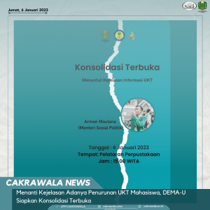 Samarinda, LPM Cakrawala – Proses pembayaran UKT/SPP Semester Genap Tahun Akademik 2022/2023 telah dibuka sejak 5 Januari kemarin, namun kejelasan terkait sistem penurunan UKT masih belum jelas dan terkait hal ini DEMA-U mengadakan konsolidasi pada Jumat, (06/01).
