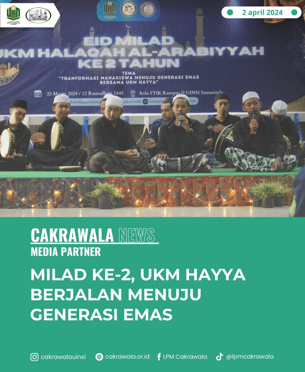 Samarinda, LPM Cakrawala — Unit Kegiatan Mahasiswa (UKM) Halaqah Al Arabiyyah (Hayya) sukses merayakan milad ke-2 pada Sabtu, (23/03), di aula Fakultas Tarbiyah dan ilmu keguruan UINSI Samarinda.