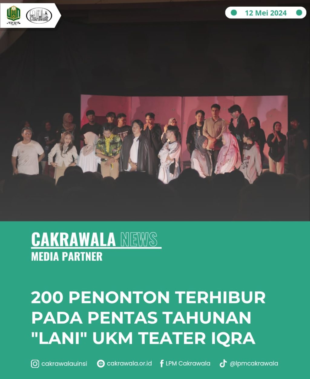 Samarinda, LPM Cakrawala – UKM Teater Iqra kembali menyuguhkan Pentas Tahunan dengan judul “LANI” karya Elly Kartika dihadapan 200 penonton di Auditorium Kampus 1 UINSI Samarinda pada Sabtu (11/5).