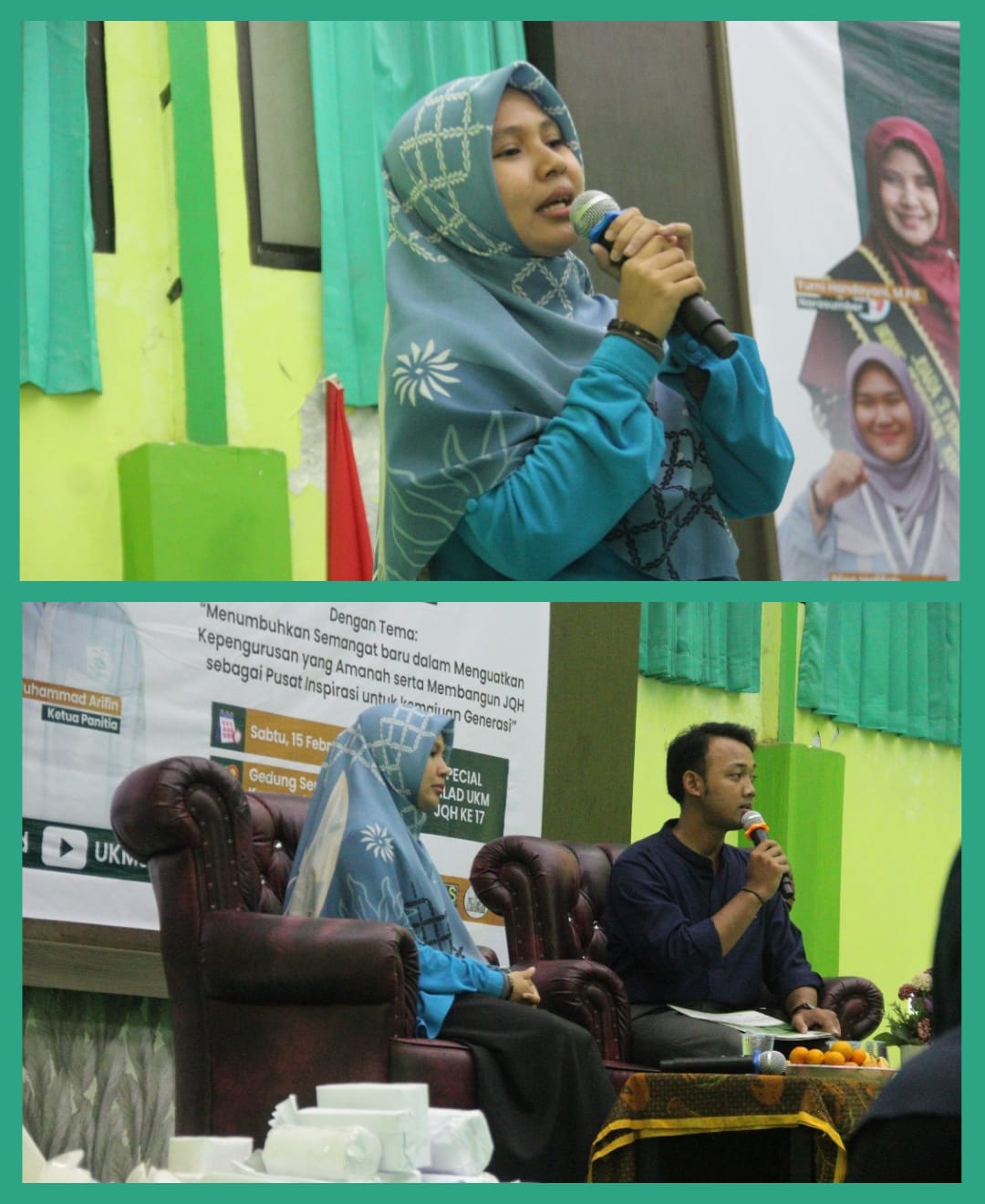 Kegiatan Upgrading dibuka pada pagi hari oleh Ustad Idris selaku pembina UKM JQH, lalu dilanjutkan dengan pelaksanaan Talkshow yang dipimpin oleh Nisa Hafifah selaku ketua umum UKM JQH periode 2025. Ia mengungkapkan bahwa upgrading dan talkshow ini bertujuan untuk memberikan bekal kepada para pengurus UKM JQH Periode 2025 agar bisa mengurus UKM JQH dalam satu tahun kedepan. “Upgrading dan Talkshow ini diharapkan dapat menjadi bekal bagi para pengurus untuk bersikap amanah dan bertanggung jawab,” ucap Afifah.