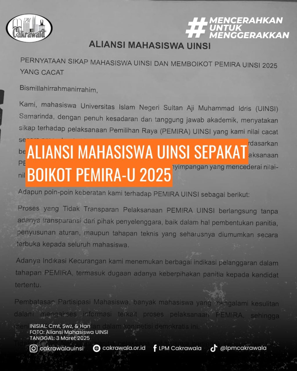 Aliansi Mahasiswa UINSI Sepakat Boikot Pemira U 2025