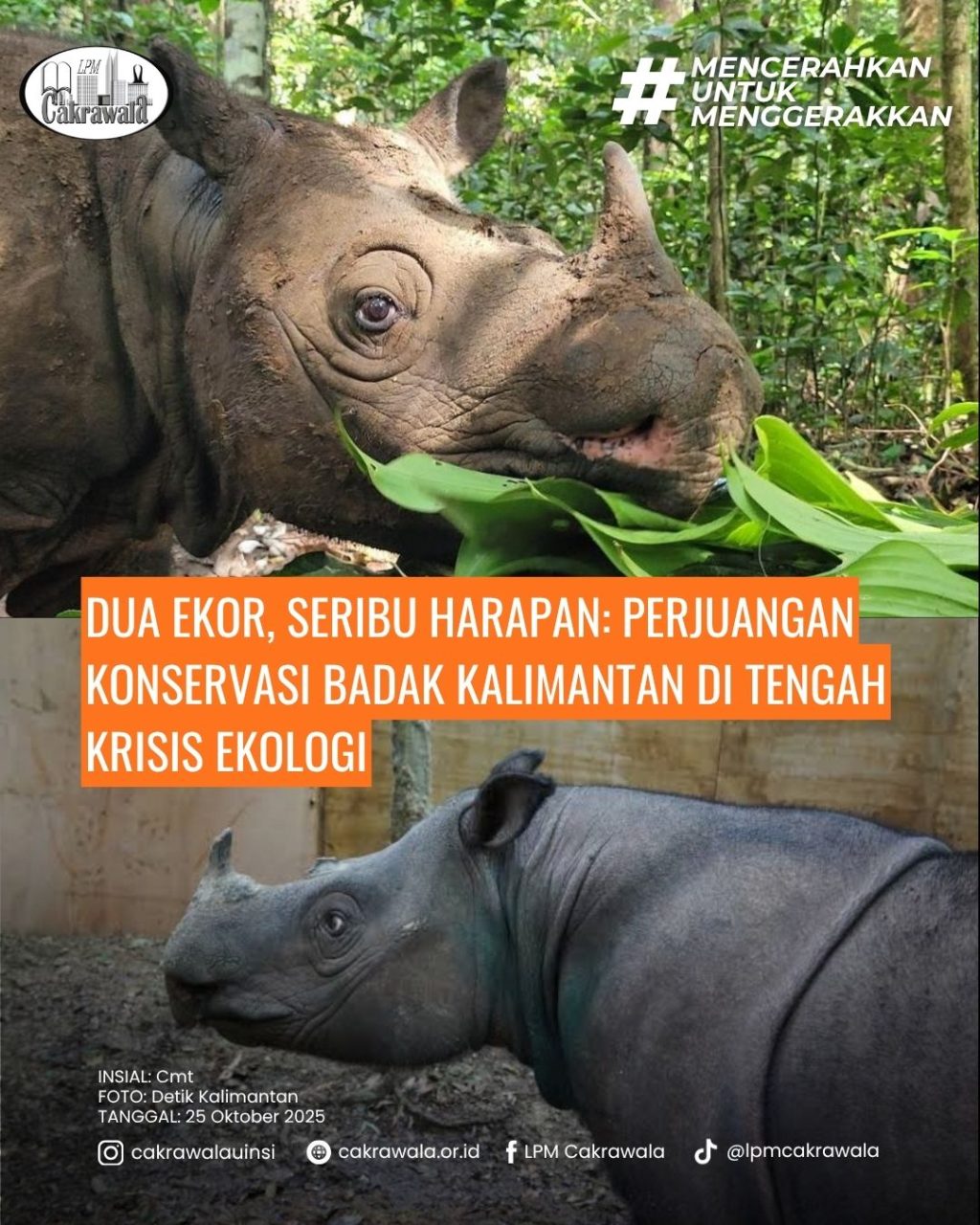 Menurut informasi yang dibagikan oleh akun TikTok @borneosocial, populasi Badak Kalimantan kini berada dalam kondisi yang sangat memprihatinkan, karena diduga hanya tersisa dua ekor saja. Salah satu individu telah berhasil diamankan dan mendapatkan perlindungan oleh Kementerian Lingkungan Hidup dan Kehutanan (KLHK) di wilayah Kutai Barat, Kalimantan Timur. Sementara itu, satu ekor lainnya masih bertahan hidup di habitat alaminya, namun keberadaannya berada di luar kawasan taman nasional, yang membuatnya sangat rentan terhadap berbagai ancaman, seperti perburuan liar dan kerusakan habitat akibat aktivitas manusia. Kondisi ini menunjukkan betapa kritisnya upaya pelestarian badak di Kalimantan yang kini berada di ambang kepunahan.